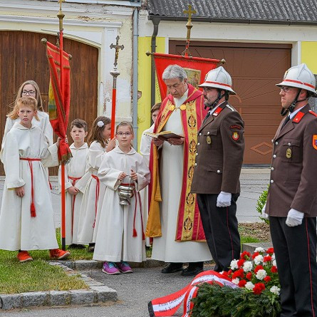 Die FF Poysbrunn hielt am Freitag, den 04.05.2018 die Feier zu Ehren des Hl. Florian ab. Nach einer hl. Messe und der Heldenehrung beim Kriegerdenkmal berichtete Kommandant OBI Markus Schrempf über Übungen und weitere geplante Vorhaben. PFM Harald Killer wurde zum FM befördert.